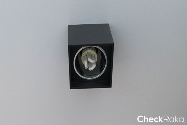 บนเพดานได้ไฟโซนทรงสีเหลี่ยมสีดำให้ 1 ดวง
