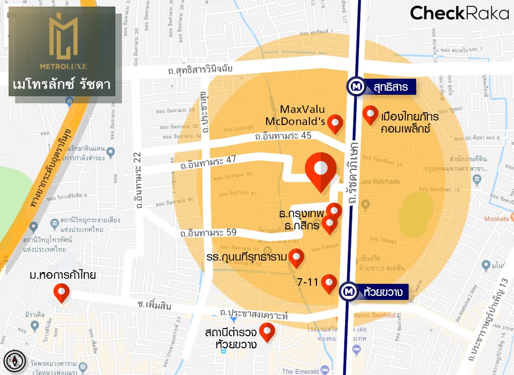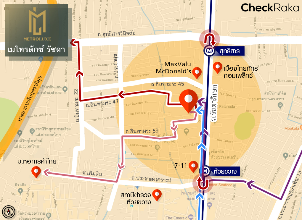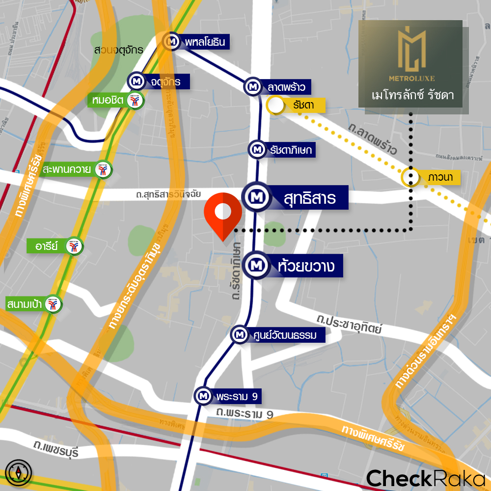 MRT สถานีห้วยขวาง (ห่างจากโครงการประมาณ 500 เมตร)
