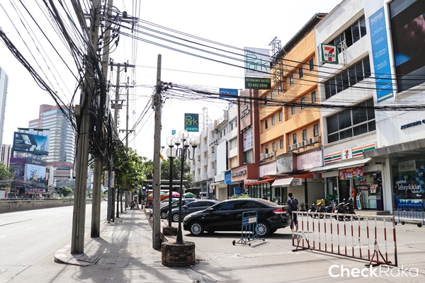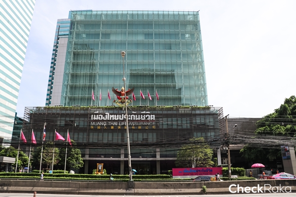 ฝั่งตรงข้ามเป็นอาคารเมืองไทยประกันชีวิต