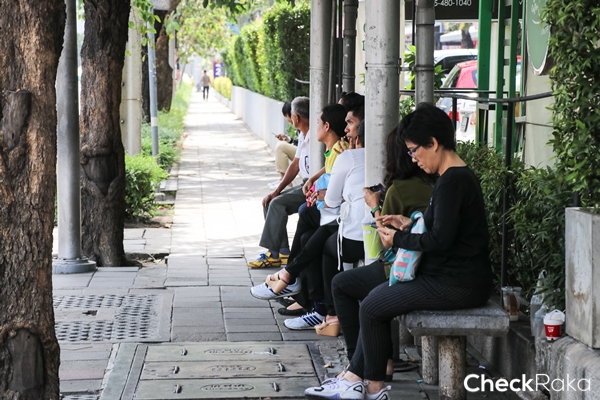 ป้ายรถเมล์ก็มีคนใช้บริการเยอะนะคะ เพราะมีรถเมล์ผ่านหลายสายเลย ประหยัดดีด้วย