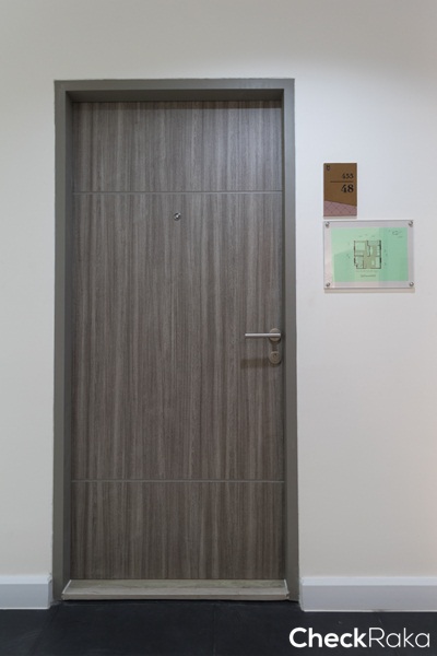 จากระเบียงมองย้อนไปยังประตูทางเข้าห้อง
