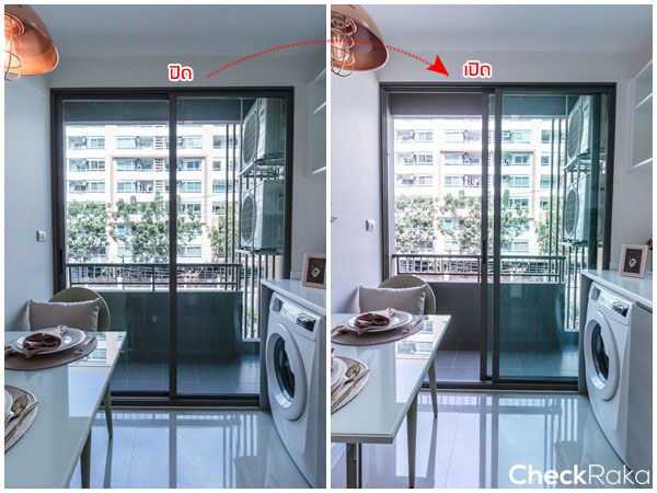ทางโครงการไม่ได้ติดเครื่องดูดควันมาให้ แต่เวลาทำครัวสามารถเปิดระเบียงเพื่อช่วยระบายกลิ่นได้อย่างเต็มที่