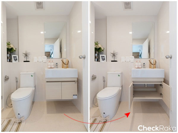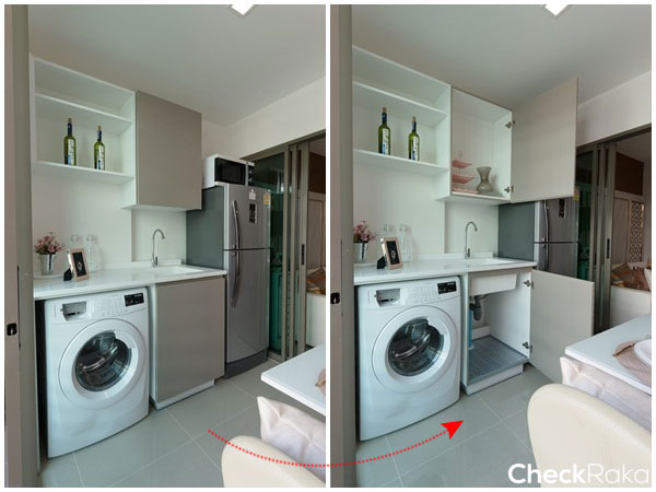 ส่วนทางซ้ายของประตูที่เห็นพื้นที่โล่งๆ นั้นจะเป็นตำแหน่งของตู้เย็น