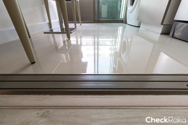 กรอบรางประตูเรียบเสมอพื้น พื้นห้องครัวปูด้วยกระเบื้อง ขนาด 60 x 60 ซม.