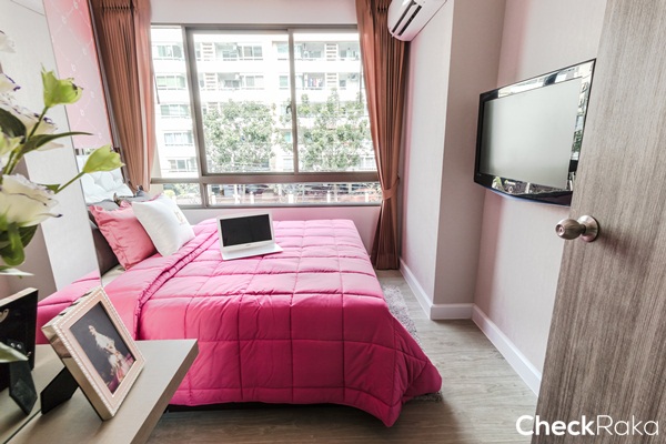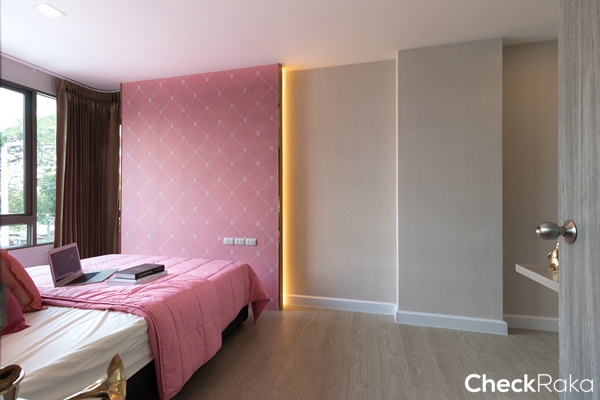 พื้นที่ห้องนอนไม่เล็กไม่ใหญ่จนเกินไป วางเตียงได้ขนาด 5 ฟุต