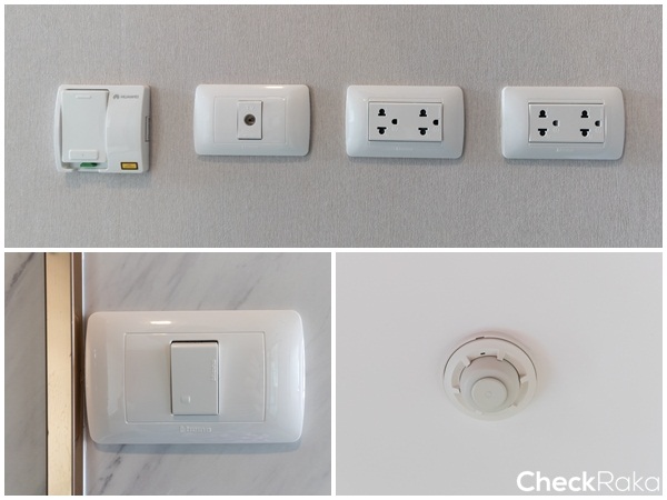 ได้ปลั๊ก และสวิตซ์ สีขาวของ bticino และได้เครื่องตรวจจับควันสีขาวหน้าตาแบบนี้