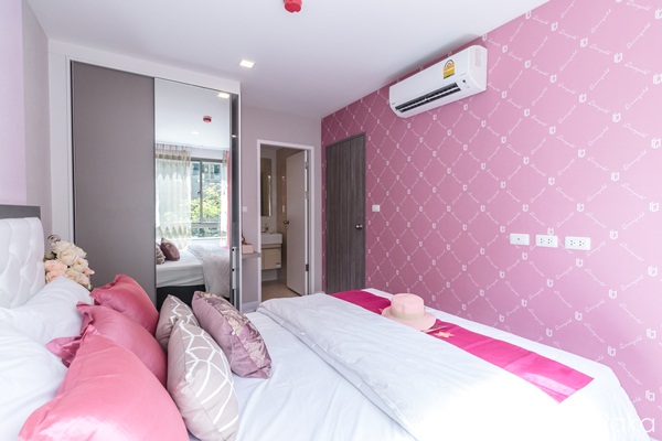 ในห้องวางเตียงขนาด 5 ฟุต ผนังปลายเตียงทางโครงการติดตั้งแอร์ ขนาด 9,000 BTU มาให้อีก 1 ตัว