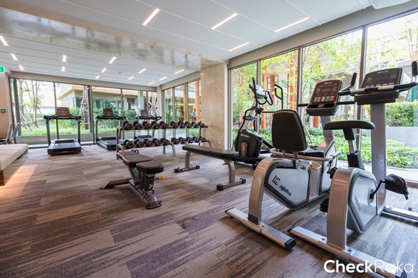 ห้องฟิตเนสออกแบบด้วยกระจกบานใหญ่เข้าออกด้วยระบบคีย์การ์ด