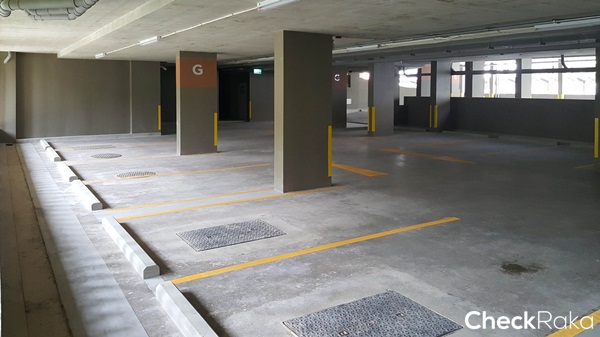 พื้นที่จอดรถในร่มบริเวณชั้น 1 ใต้อาคาร D