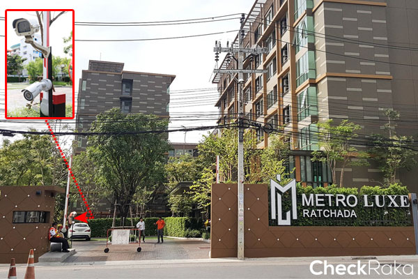 ด้านหน้าโครงการติดตั้งกล้อง CCTV และมี รปภ. ช่วยดูแลความปลอดภัย