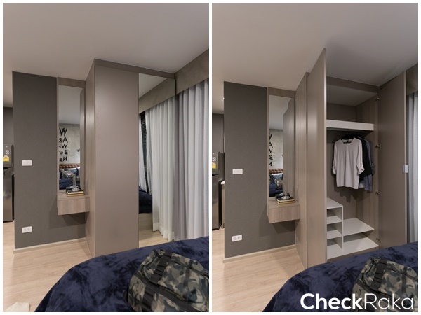 เปิดบานตู้ได้สบายๆ ไม่ต้องกลัวชนเตียงเพราะเหลือพื้นที่เหลืออีกพอสมควร