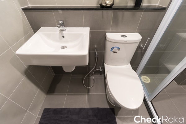 ภายในห้องน้ำแบ่งพื้นที่ส่วนเปียกส่วนแห้งมาให้เป็นสัดส่วน