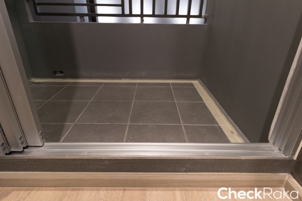 พื้นระเบียงปูด้วยกระเบื้องสีเทาขนาด 30x30 ซม.