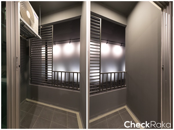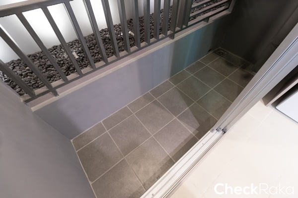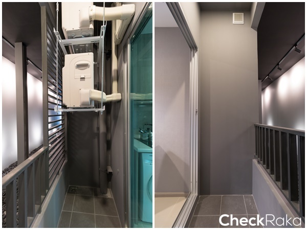 พื้นที่ระเบียงไม่กว้างมากนัก แต่ก็ยังพอจะตั้งราวตากผ้าขนาดไม่ใหญ่มากได้อยู่