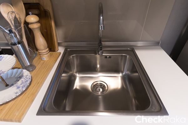อ่างล้างจาน และก๊อกน้ำของ Mex อยู่ฝั่งซ้าย ติดกับตู้เย็น