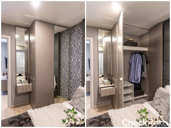 ติดกันได้โต๊ะเครื่องแป้งที่ Built-in ติดผนัง พร้อมติดตั้งกระจกเงาไว้ให้แต่งตัว