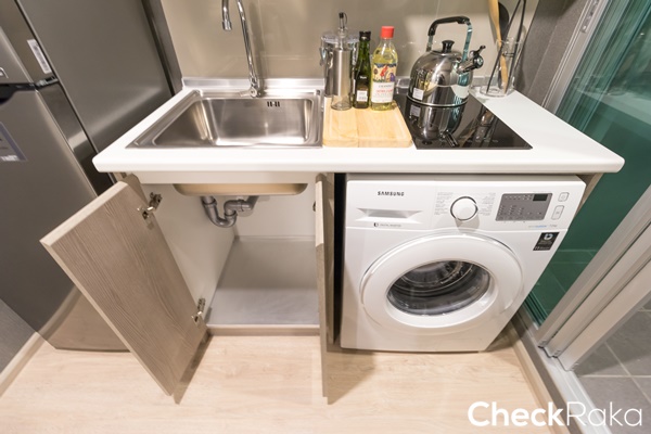 ที่วางเครื่องซักผ้าอยู่ใต้เคาน์เตอร์ครัว เหมาะสำหรับฝาหน้าความจุ 7 กก.