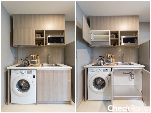 ได้ห้องครัวแบบเปิด สำหรับใครที่ชอบทำครัวจะกั้นเป็นครัวปิดไปเลยก็ได้ จะได้ช่วยป้องกันกลิ่นได้ดีขึ้น