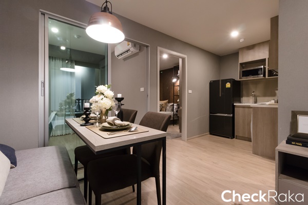 ได้โต๊ะทานอาหารขนาด 2 ที่นั่ง ตั้งอยู่ภายในห้องครัว โดยมีระยะทำครัวอยู่ที่ประมาณ 90 ซม.