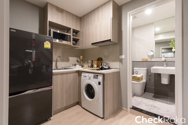 ขยับไปดูห้องครัว และห้องน้ำกันต่อค่ะ พื้นที่ทางเดินเข้าครัวกว้างประมาณ 90 ซม.