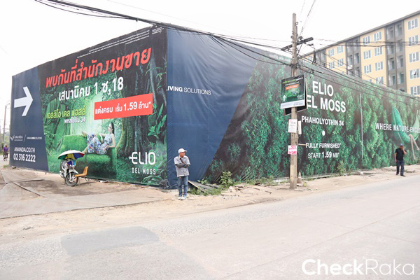 ถึงแล้วค่ะที่ตั้งโครงการ Elio Del Moss ที่ล้อมรั้วไว้อยู่ระหว่างการก่อสร้าง