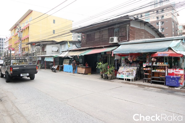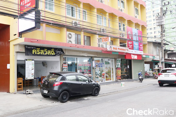 ติดกับร้านกาแฟจะเป็นแนวอาคารพาณิชย์ ด้านล่างเปิดเป็นร้านอาหารตามสั่ง ร้านขายยา และ Shop True