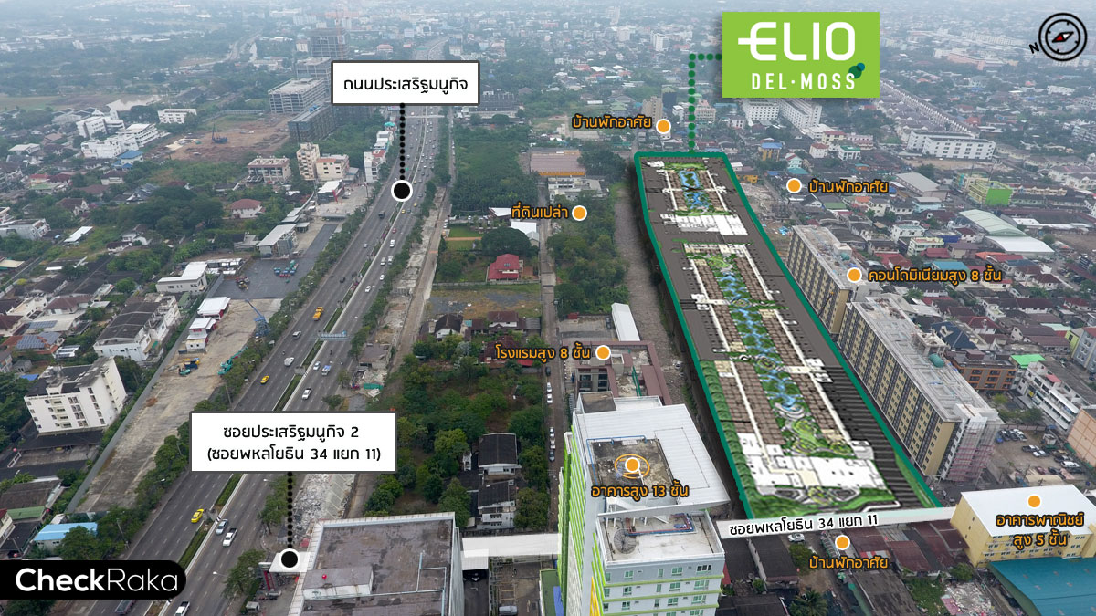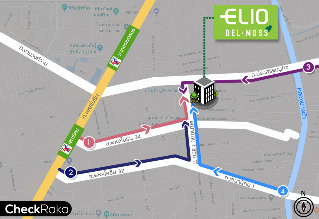 ตัวคอนโด Elio Del Moss ตั้งอยู่ภายในซอยพหลโยธิน 34 บนถนนพหลโยธิน แขวงเสนานิคม เขตจตุจักร กทม. ซึ่งอยู่ในย่านพหลโยธิน ทำเลที่อุดมสมบูรณ์ และรวบรวมสิ่งอำนวยความสะดวกที่จำเป็นต่อการใช้ชีวิตอย่างครบถ้วน ไม่ว่าจะเป็น