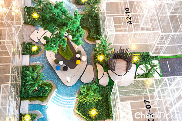 มีสวนสีเขียวสำหรับให้ลูกบ้านมานั่งเล่นพักผ่อนได้ 2 ฝั่ง จุดแรกอยู่บริเวณใกล้ๆ อาคาร A