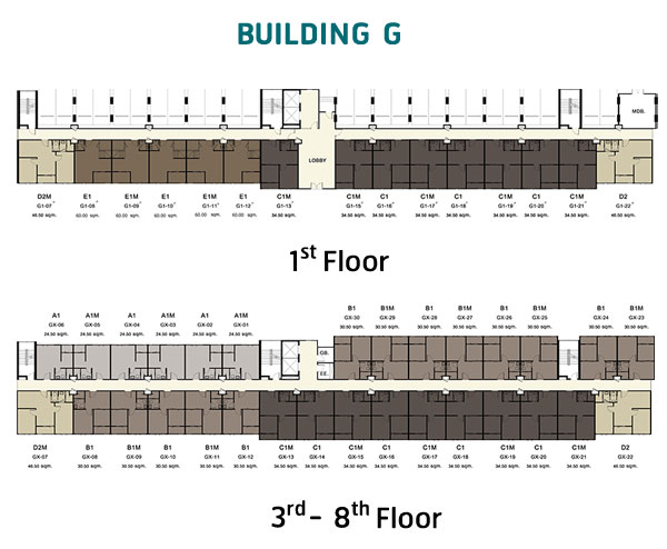 Master อาคาร G : อาคาร G : อาคารพักอาศัยรูปทรงตัว I สูง 8 ชั้น มีห้องพักอาศัยทั้งหมด 219 ยูนิต ประกอบด้วย