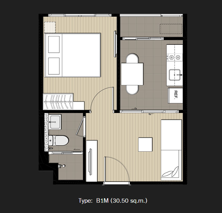 - ภาพห้องตัวอย่างแบบ 1 Bedroom ขนาด 30.5 ตร.ม.