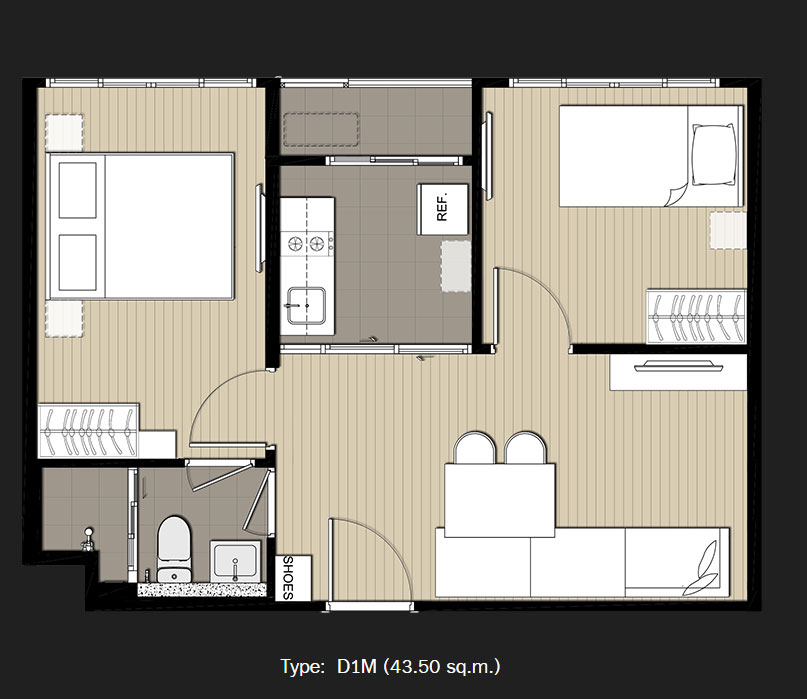 - พื้นที่ใช้สอย 43.5 ตารางเมตร ราคาจะเริ่มต้นที่ 3.0 ล้านบาท