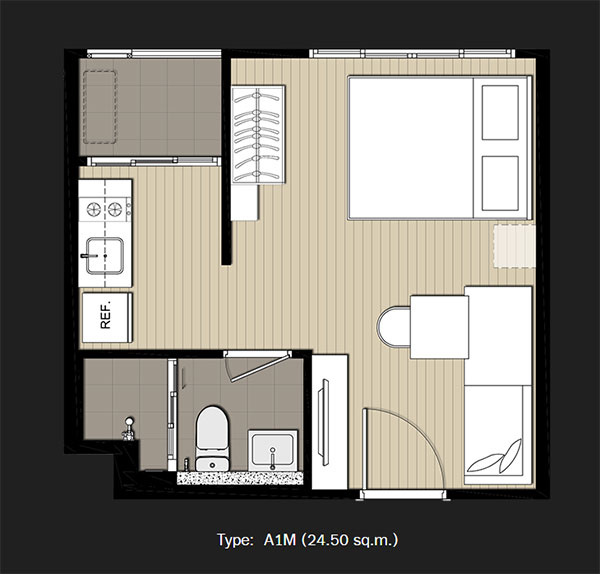 (คลิกชมแปลนห้อง) - ภาพห้องตัวอย่างแบบ Studio ขนาด 24.50 ตร.ม.