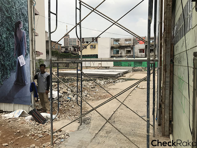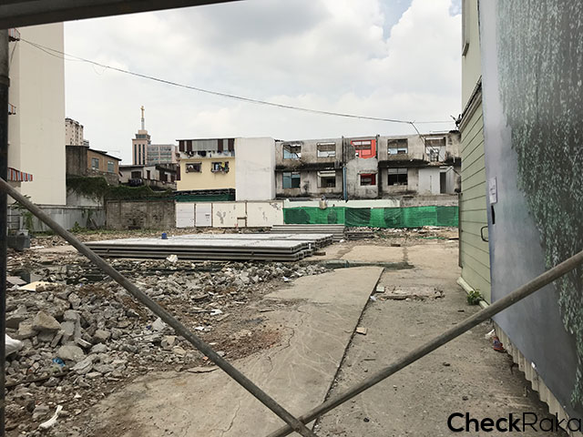 เข้าไปใกล้ๆ อีกนิด มองเห็นอาคารเก่าอยู่ระหว่างรื้อถอน