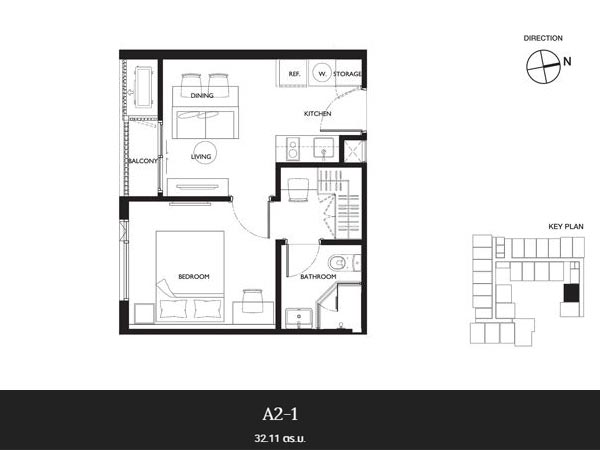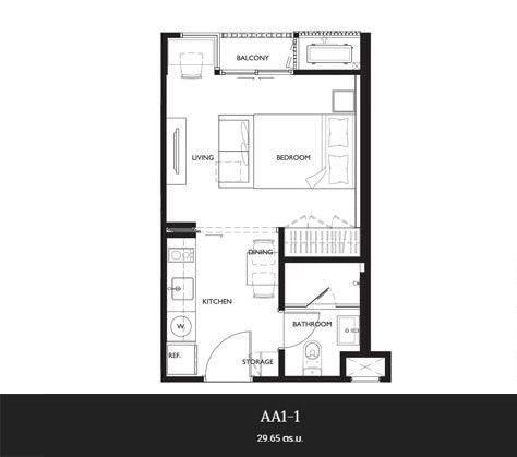 (คลิกเพื่อชมแปลนห้อง) - แบบ 1 ห้องนอน - เนื้อที่ 32.00 - 35.66 ตร.ม.