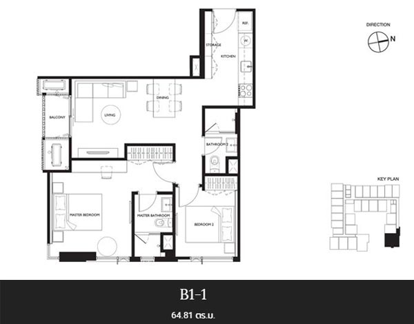 (คลิกเพื่อชมแปลนห้อง) - แบบ 2 ห้องนอน - เนื้อที่ ขนาด 60.55 - 64.81 ตร.ม.