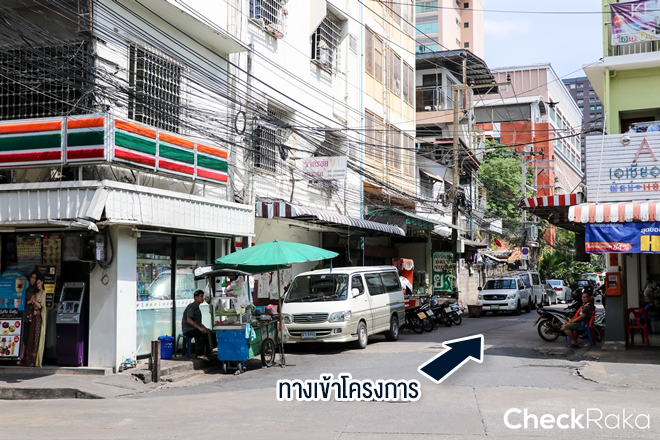 กลับมาดูที่ทางเข้าโครงการกันบ้าง หน้าทางเข้ามาร้านเซเว่นตั้งอยู่ก็ถือเป็นเรื่องสะดวกสำหรับชีวิตมนุษย์คอนโดมาก