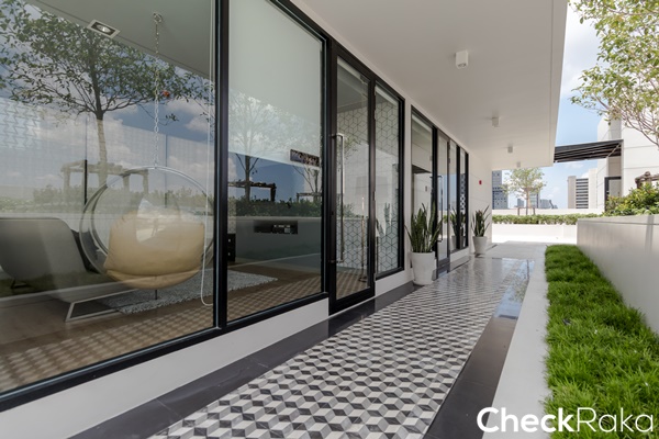 ธรณีระเบียงยกสูงป้องกันปัญหาน้ำรั่วน้ำซึมเวลาฝนตก หรือเวลาซักล้างบริเวณระเบียงได้ดี