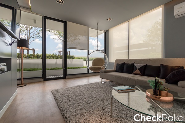 ทำให้ห้องดูสว่างช่วยประหยัดไฟเวลากลางวัน ทางโครงการติดตัวบังรางม่านมาให้ตามแบบนี้ได้เรื่องความสวยงาม