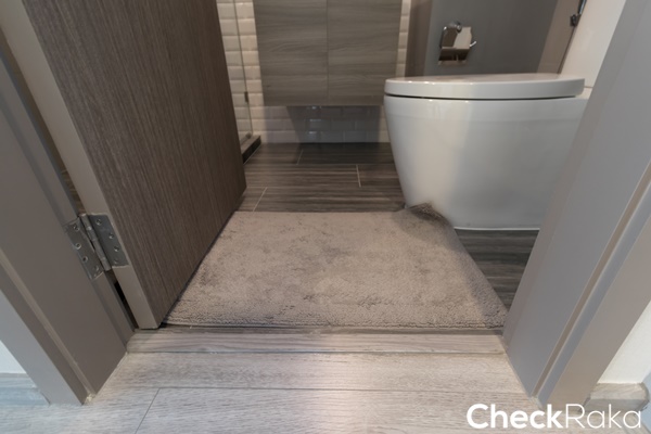 ตำแหน่งห้องน้ำอยู่ภายในห้องนอน พื้นลดระดับลงนิดหน่อย