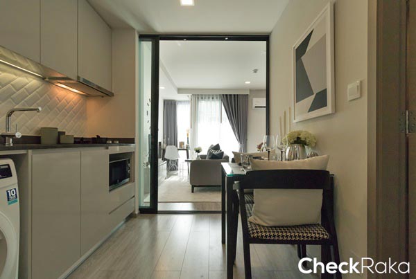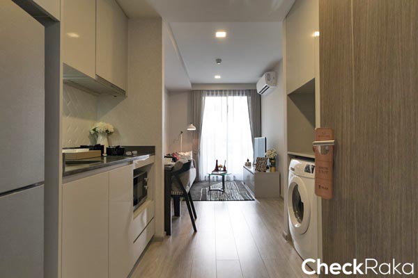เปิดเข้ามาโซนแรกจะเป็นห้องครัว ห้องนี้ได้ครัวแบบปิด ถัดไปเป็นห้องนอนและห้องนั่งเล่น