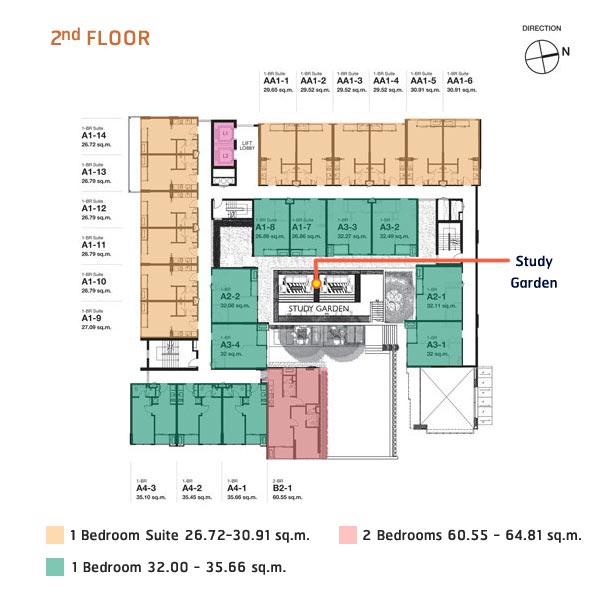 Floor Plan ชั้น 2 : สวนเพื่อการเรียนรู้ และห้องพักอาศัยจำนวน 24 ยูนิต