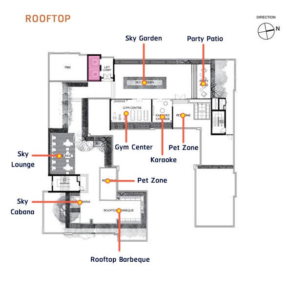 Floor Plan Rooftop : จะเป็นสิ่งอำนวยความสะดวกทั้งหมด ซึ่งจัดมาแบบเต็มพื้นที่