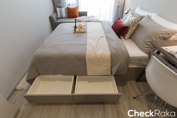 ที่ฐานเตียงเป็นลิ้นชัก 2 ช่องสามารถเก็บของได้ เป็นแบบ Soft Close