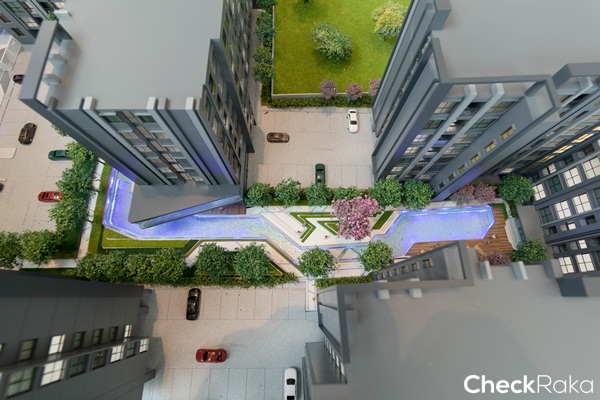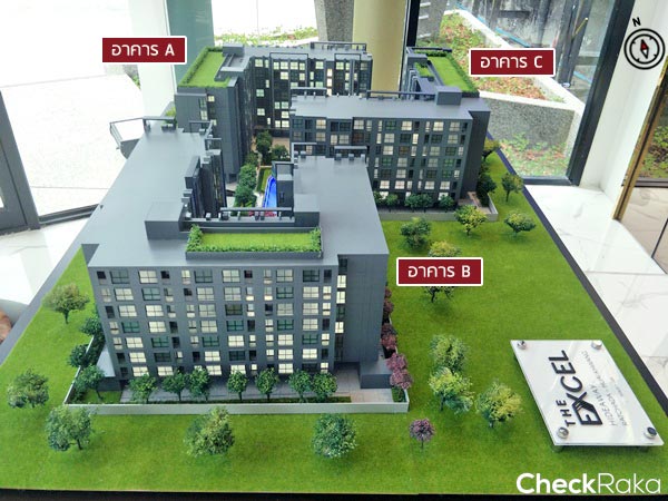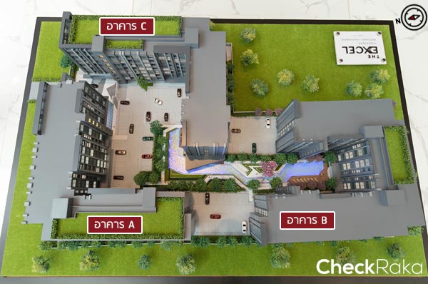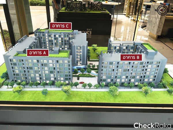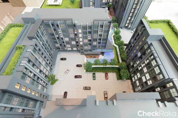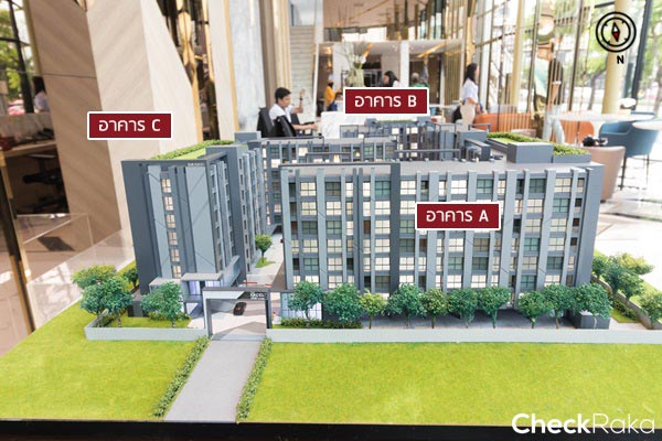 ทางโครงการออกแบบอาคารพักอาศัยโอบล้อมพื้นที่ส่วนกลางและสระว่ายน้ำขนาดใหญ่ ให้ความรู้สึกร่มรื่น นอกจากนี้ยังจัดสิ่งอำนวยความสะดวกกระจายอยู่ในแต่ละอาคารอีกด้วย ซึ่งแต่ละอาคารก็จะมีข้อดีแตกต่างกันไป โดยอาคาร A จะอยู่ใกล้ทางเข้าออก สะดวกไม่ต้องเดินไกล, อาคาร B เป็นส่วนตัวมากที่สุดเพราะอยู่ด้านในสุด และใกล้สระว่ายน้ำ ได้วิวสระแบบเต็มๆ และอาคาร C เป็นอาคารที่รวมสิ่งอำนวยความสะดวกไว้เยอะที่สุดสามารถเดินมาใช้บริการได้สะดวก ทั้ง Co-Working Space, Shop ร้านค้า 2 ยูนิต , ห้องฟิตเนส และห้องอ่านหนังสือ นอกจากนี้บนดาดฟ้าของแต่ละอาคารยังมีพื้นที่สีเขียวอีกด้วย