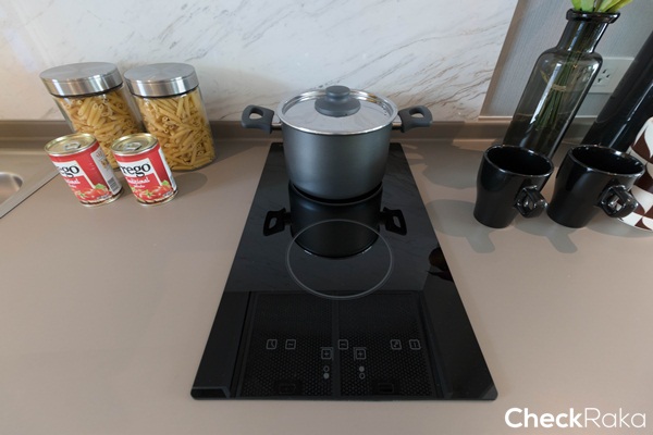 ได้เตาไฟฟ้า 2 หัว และเครื่องดูดควันของ Hafele ระบบดูดออกด้านนอก