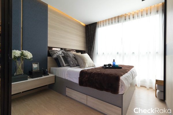 ทางโครงการ Built-in หัวเตียงมาให้ดูเป็นไอเดีย แต่ห้องที่ส่งมอบให้ลูกค้าเป็นเพียงฉาบเรียบทาสีเท่านั้น
