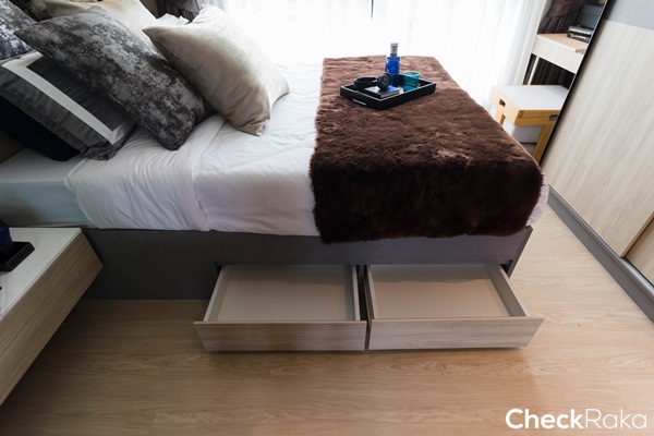 ได้เตียงขนาด 5 ฟุต ที่ฐานเตียงมีลิ้นชักเก็บของ