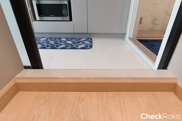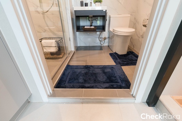 ยกธรณีสูงประมาณ 8 ซม. ป้องกันน้ำไหลออกมาด้านนอกเวลาที่ทำความสะอาดพื้น