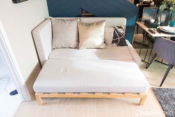 ฐานโซฟาสามารถเลื่อนออกมาได้ รองรับเวลามีแขกหรือนัดเพื่อนมาปาร์ตี้ที่ห้องได้