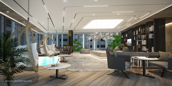 ภาพจำลองบรรยากาศห้อง Library room ให้ลูกบ้านมานั่งอ่านหนังสือ หรือนั่งทำงานได้